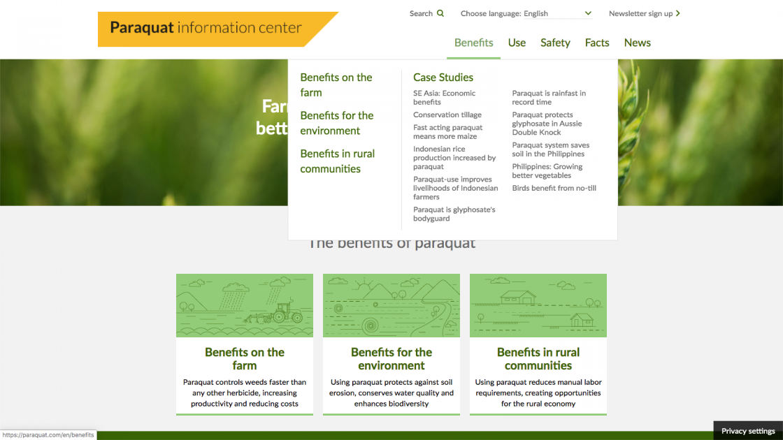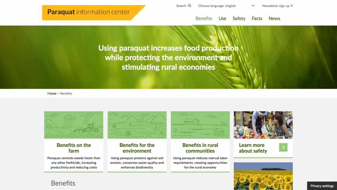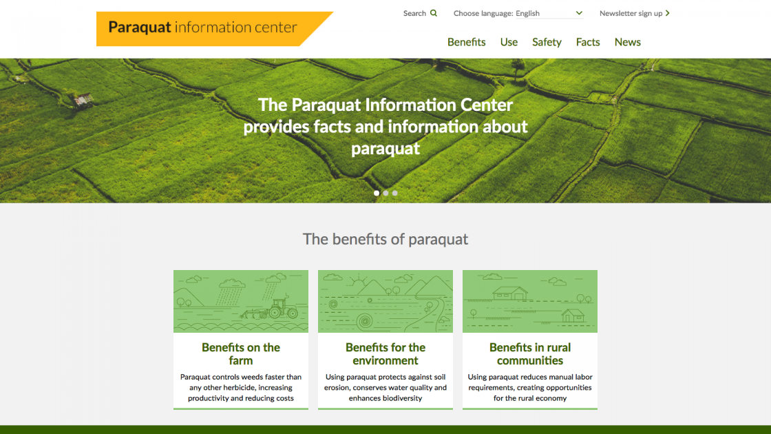The Paraquat Information Center is a central resource for information on this herbicide in six languages (Chinese, English, Indonesian, Portuguese, Spanish, and Thai).