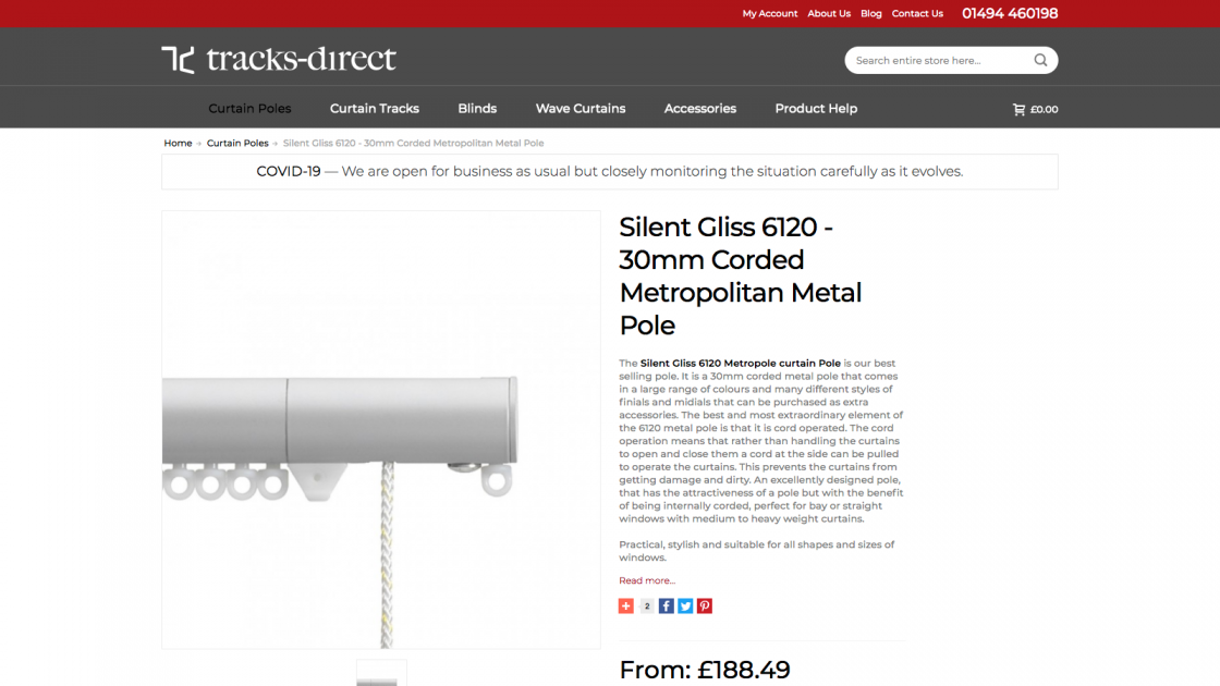 In addition to the original Tracks-Direct site, we have also created two sister sites (Bradbury Tracks and The Curtain Pole and Track Company) and we continue to add new content and features.